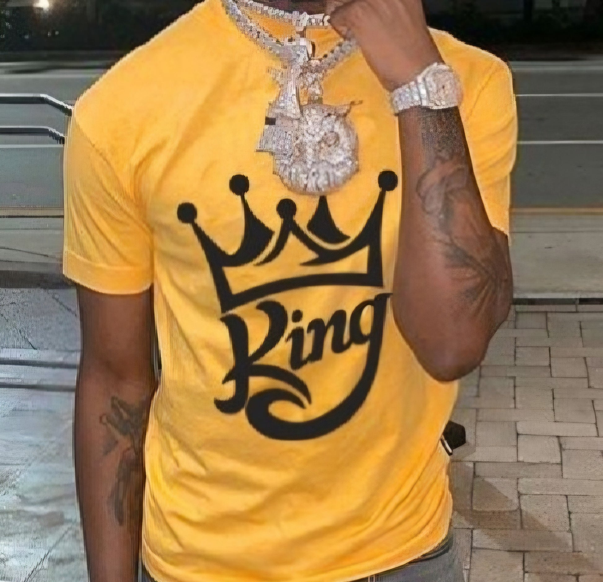 Summer Yellow Crew Neck Printing Men's T-shirt